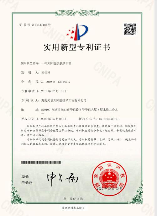 近日,我司申報(bào)的“一種太陽能熱泵蒸汽發(fā)生裝置”發(fā)明專利通過審查,獲得國家知識(shí)產(chǎn)權(quán)局授予的發(fā)明專利證書,授權(quán)專利號(hào)為“ZL201911126309.4”。 此次獲得國家頒發(fā)的專利證書,是對(duì)海南光譜公司創(chuàng)新實(shí)力的認(rèn)可,代表著我司知識(shí)產(chǎn)權(quán)取得了突破性進(jìn)展,為公司的持續(xù)性發(fā)展提供強(qiáng)有力的科技創(chuàng)...